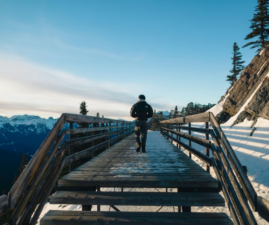 Admire the grandeur of Lake Louise surrounded by snowcapped peaks.