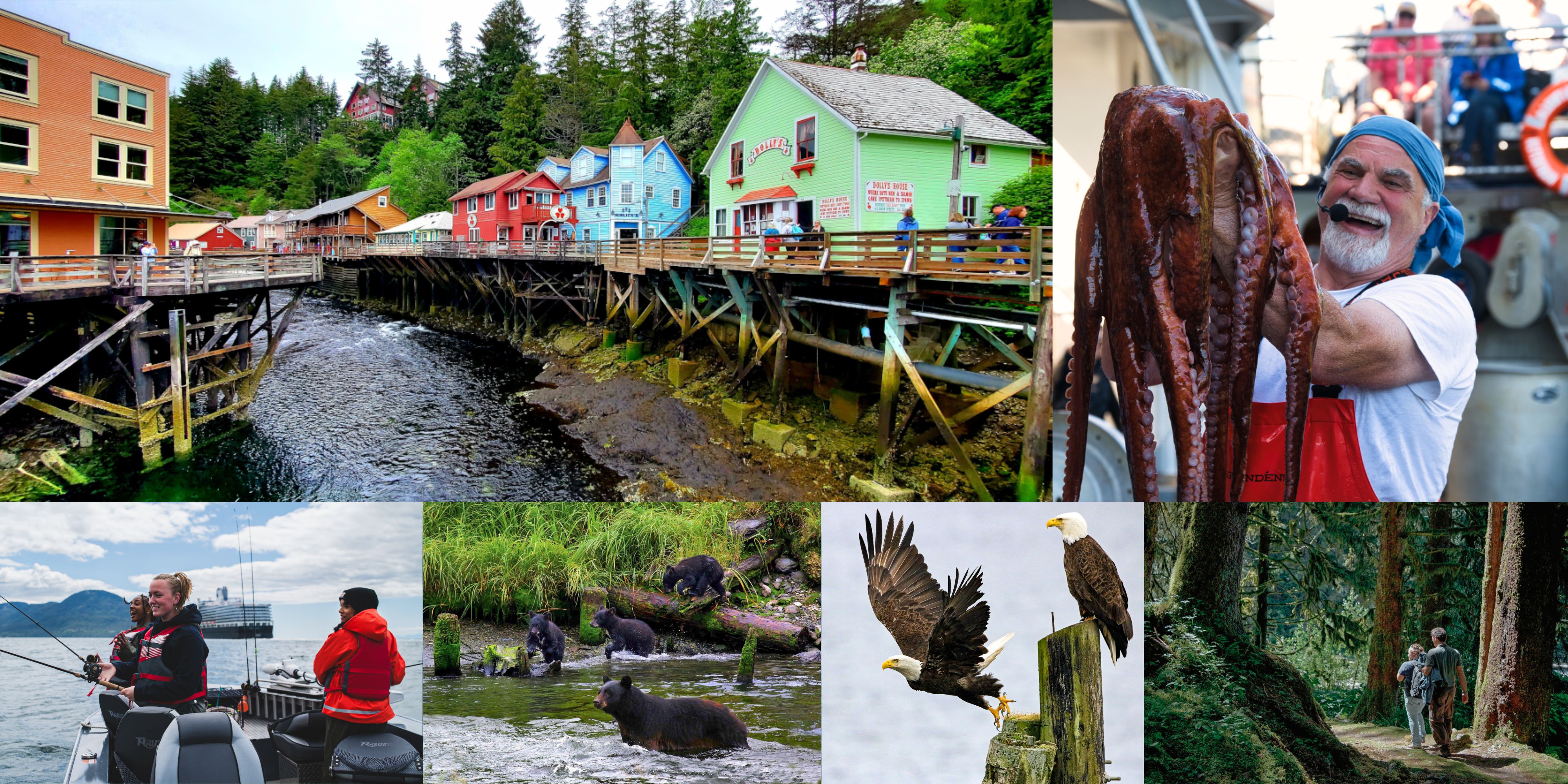 Take an adventure and cruise to Ketchikan, Alaska. Alaska's "First City" of Ketchikan is so named because it’s the first major landfall for most cruisers as they enter the picturesque fjords of the Inside Passage, where the town clings to the banks of the Tongass Narrows, flanked by green forests nurtured by abundant rain.