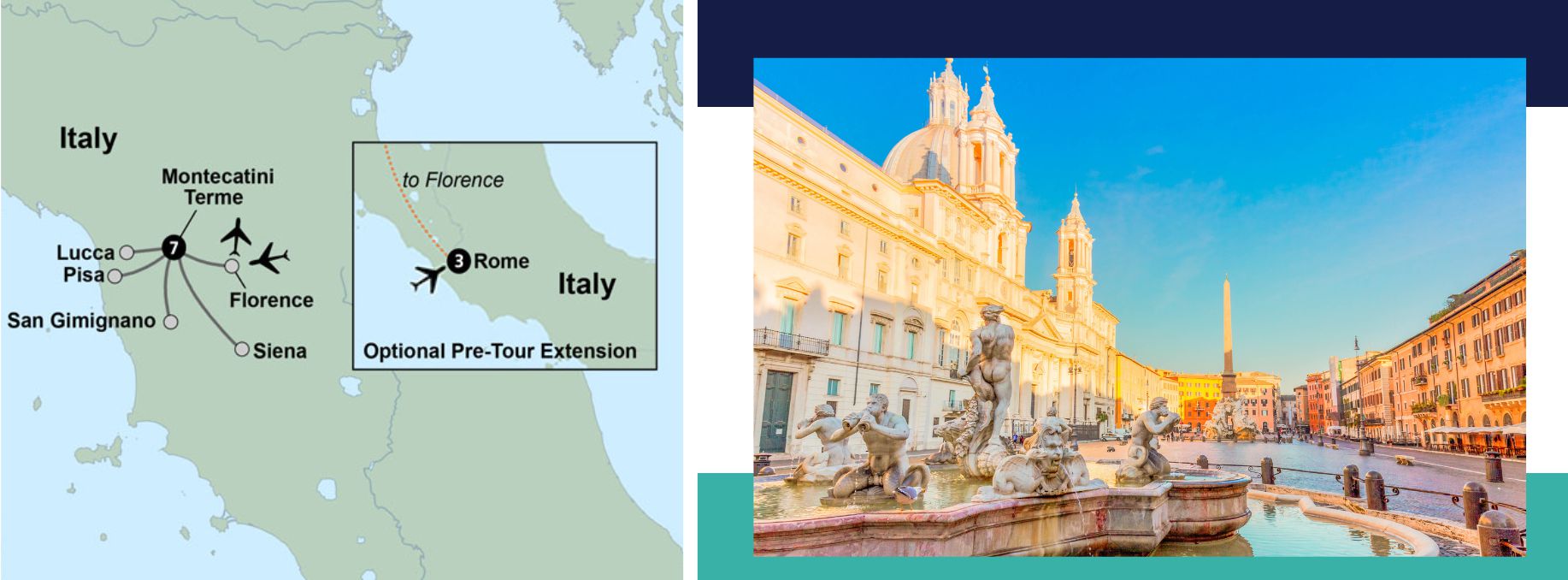 • Make yourself at home in the famous spa resort town of Montecatini Terme for seven nights.